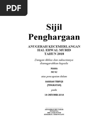 Sijil Anugerah Kecemerlangan Hal Ehwal Murid Pdf