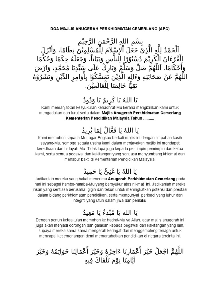 01 Doa Majlis Anugerah Perkhidmatan Cemerlang Pdf