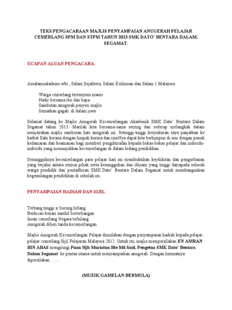 Teks Pengacaraan Majlis Penyampaian Anugerah Pelajar Cemerlang Pmr Pdf